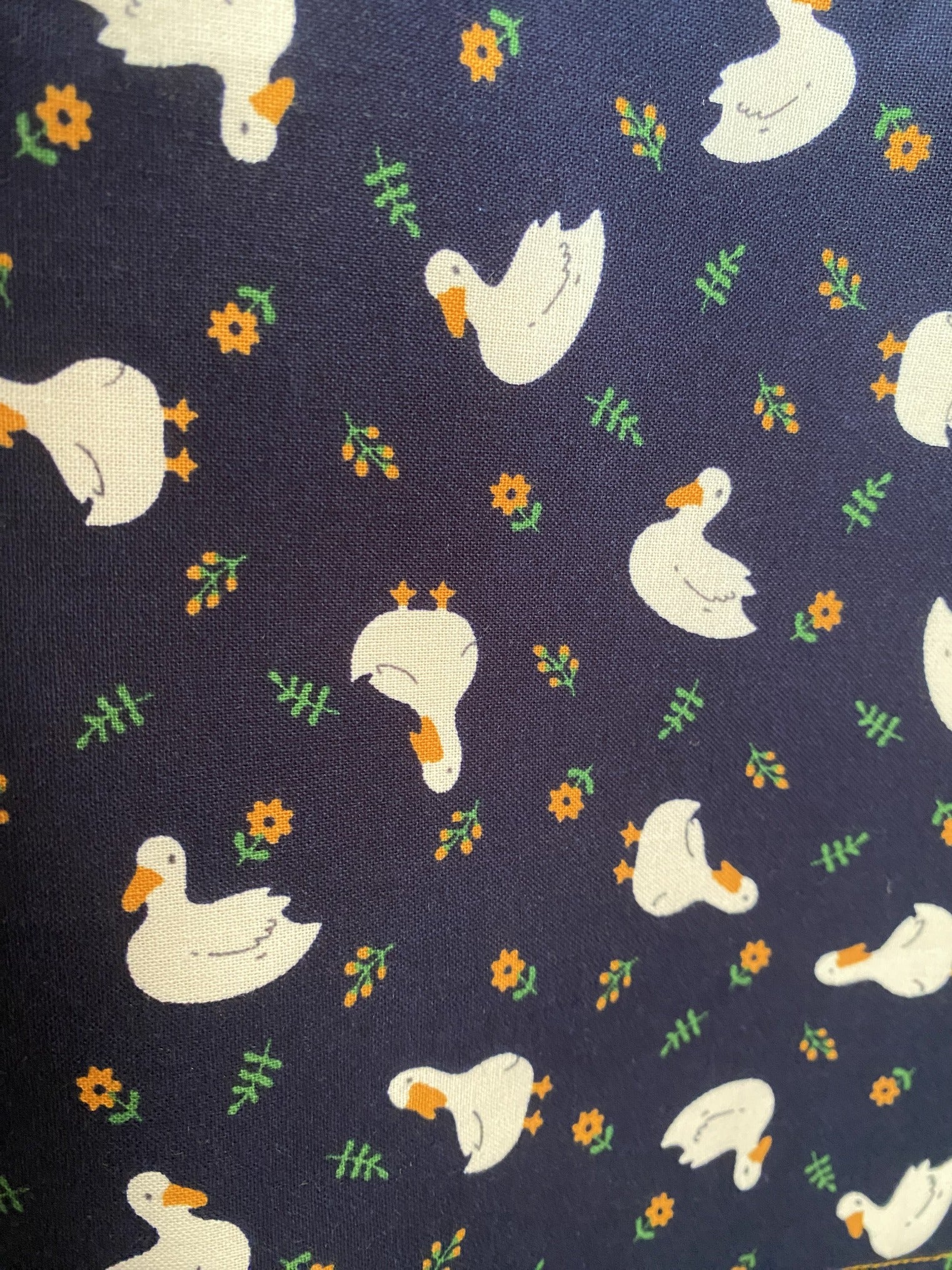 - Cute Duck Print: Playful white ducks scattered across a deep navy background bring a touch of whimsy to every activity.