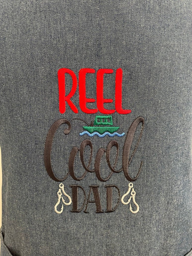 Please be aware that the lining and strap colours are subject to change based on the availability of materials, making each apron distinct. Whether you're the family grill master or simply enjoy the art of barbecuing, our 'Reel Cool Dad' Embroidered BBQ Apron stands ready to complement your skills and style by the grill.