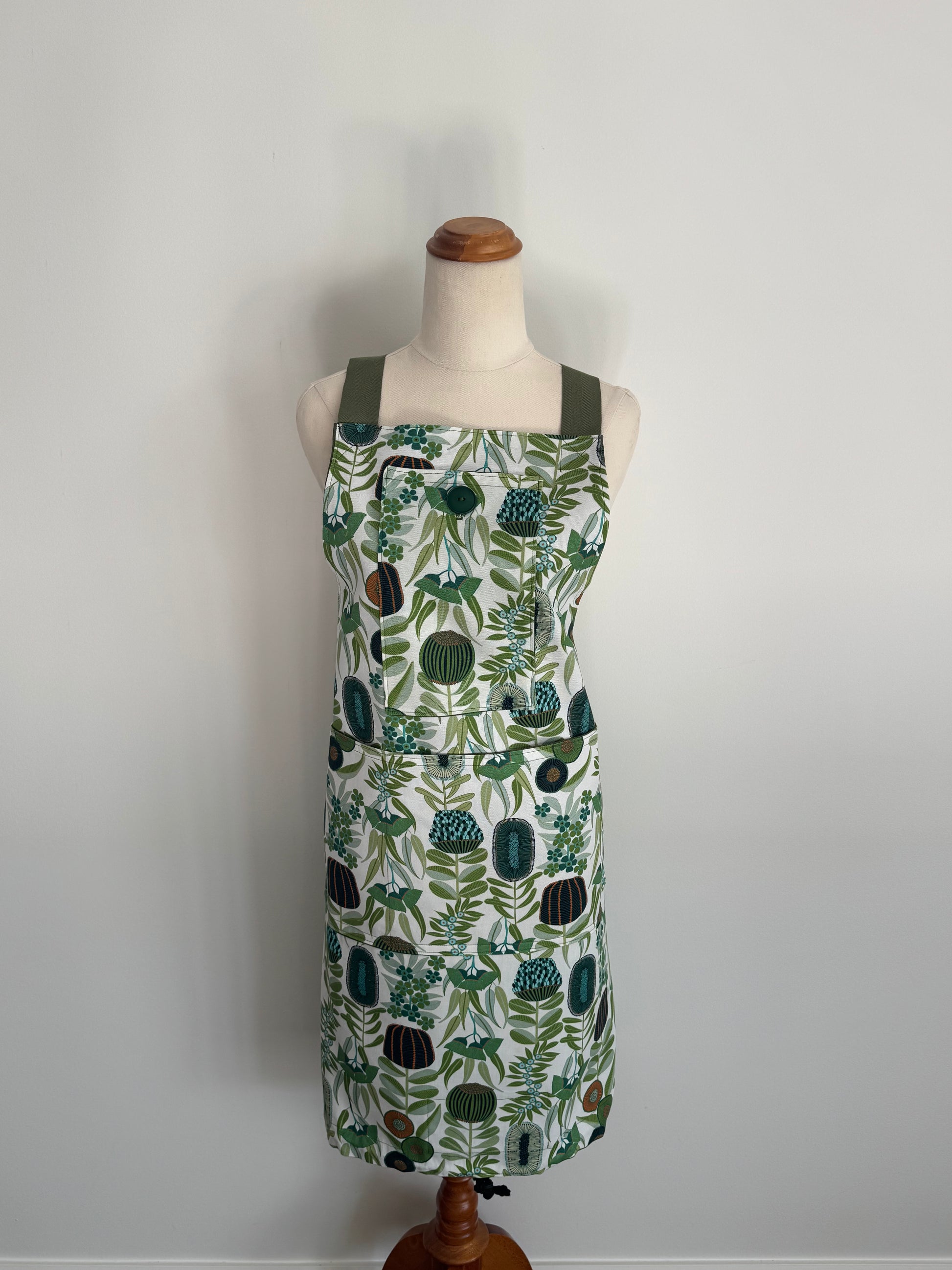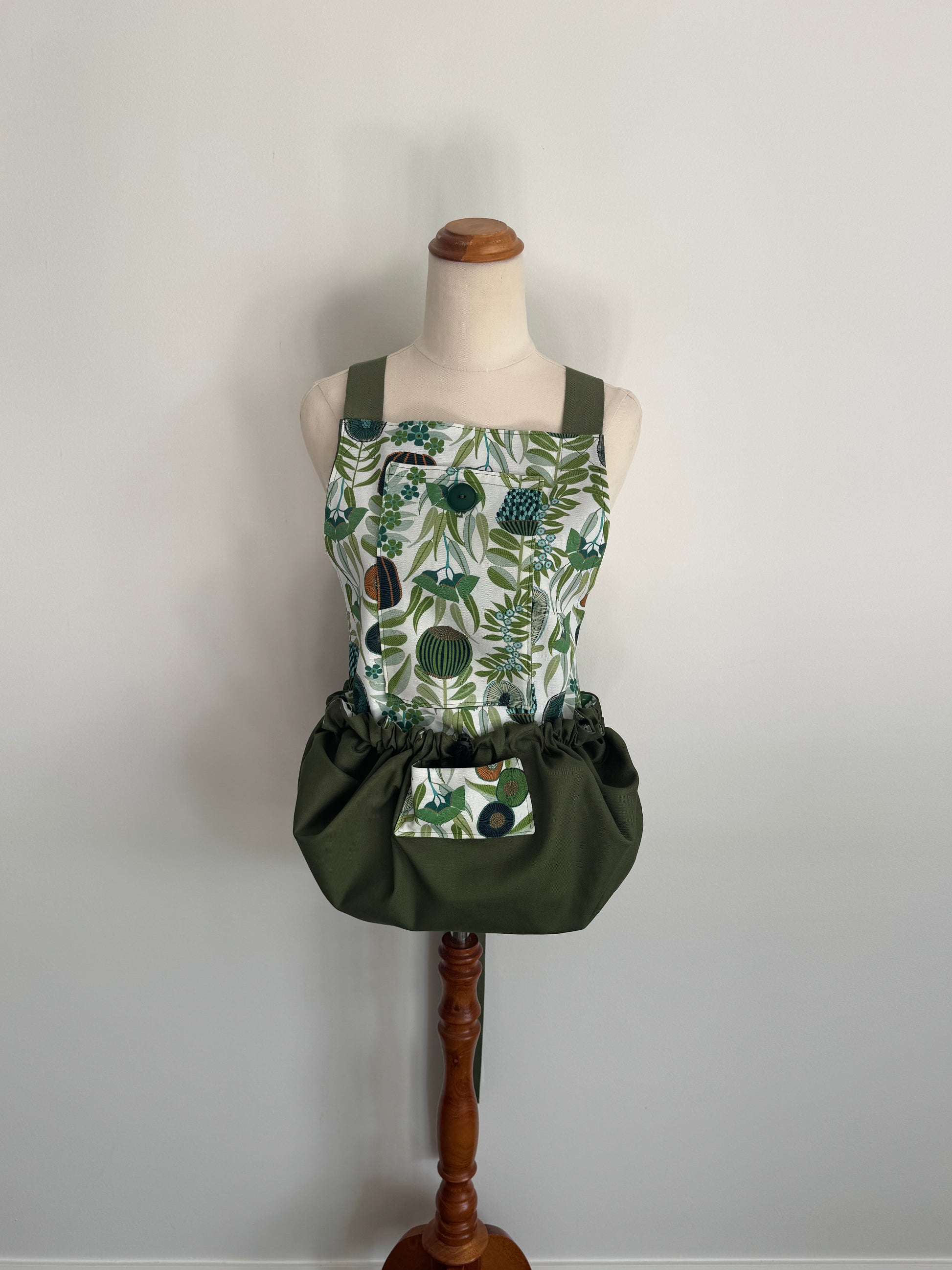 Designed with an adjustable fit for flexibility and all-day wear, this apron moves with you, making it ideal for harvesting, planting, and tending to your garden. The Green Banksia-inspired design adds a natural and elegant touch, blending functionality with beauty. Stay organised and make your gardening experience even more enjoyable with this stylish and practical apron!