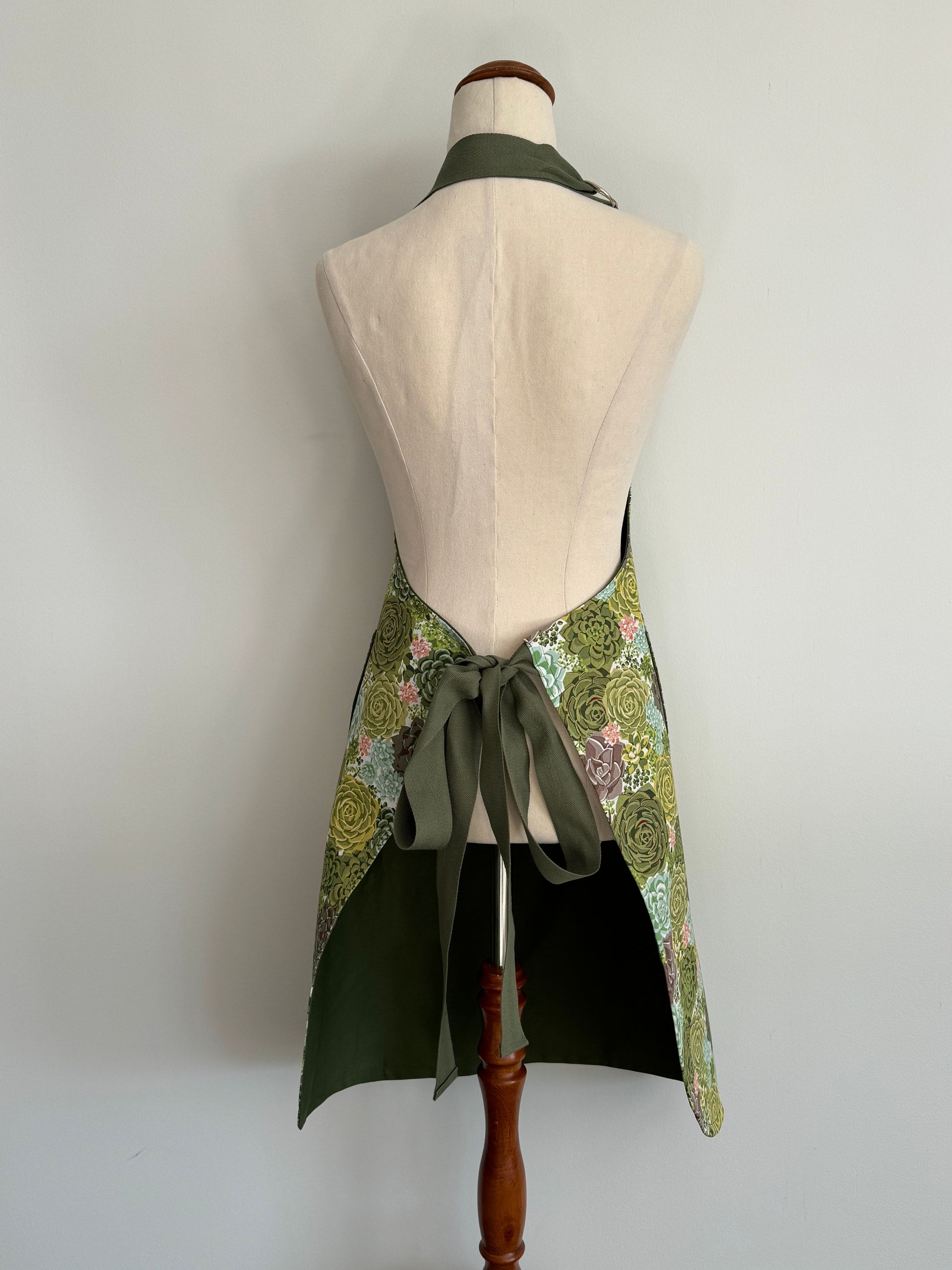 As each piece is handcrafted, slight variations in size are a testament to its artisanal origins, making your apron as unique as the dishes you create. Please note, the lining and strap colors may differ based on fabric availability, adding to the uniqueness of each apron. Embrace the blend of functionality and chic design that this succulent-themed apron brings to your everyday tasks.