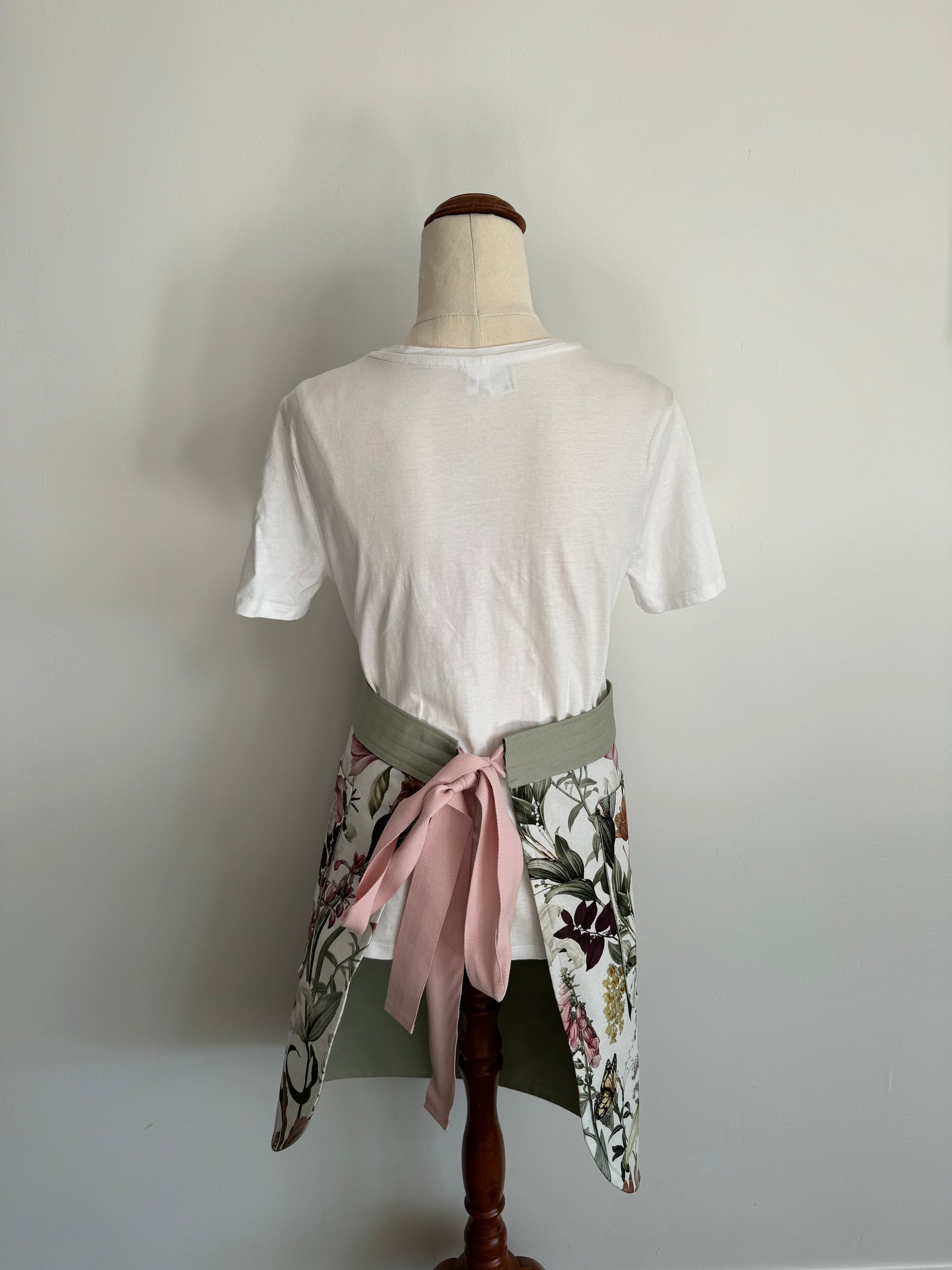 Secured with a sage green waist strap that ties effortlessly, this apron offers a touch of tranquility and practicality to your daily routine. Whether you're a culinary aficionado or a crafting connoisseur, let this apron be your canvas as you create, experiment, and enjoy the art of the everyday.