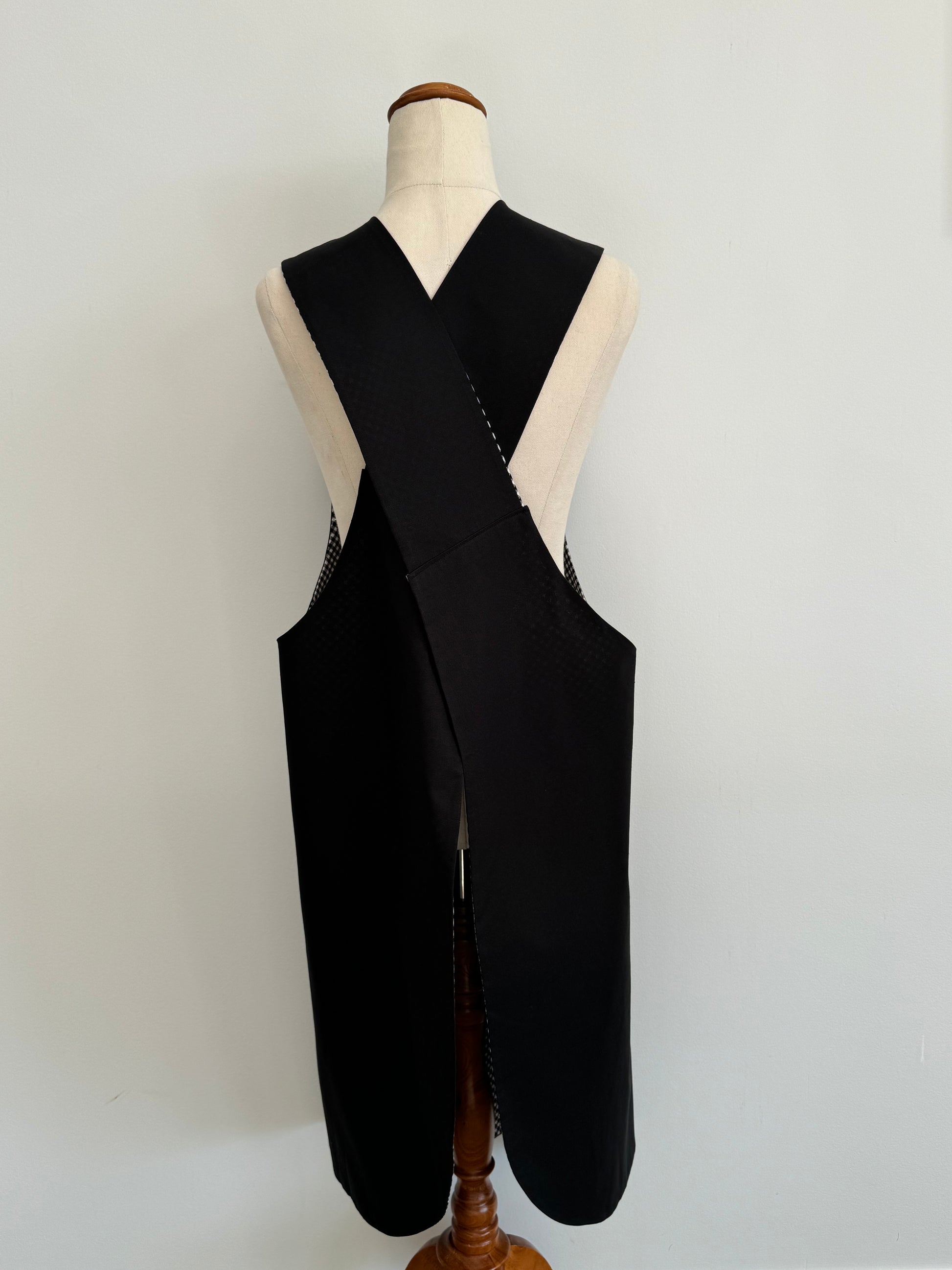 Step into classic style with the Aproned wrap-around apron in Black and White Gingham Fabric. This apron combines timeless design with modern convenience. It's designed for easy wear, simply slipping over your head and resting comfortably across your back with no ties, knots, or fuss.