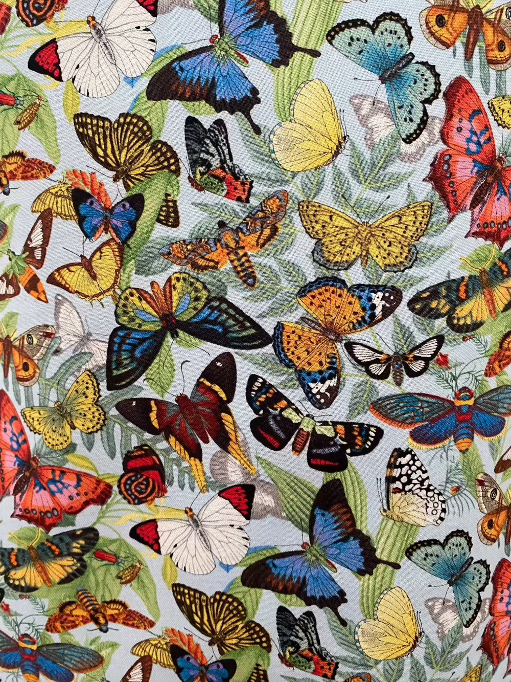 The Aproned wrap-around apron adorned in Butterfly Fabric is a celebration of nature's delicate beauty, combined with practical design. With a fabric teeming with a kaleidoscope of butterflies, this apron is not just a garment but a statement piece that brings the splendor of the outdoors into your kitchen. The variety of butterflies depicted in mid-flight creates a vibrant and colourful pattern that is sure to brighten any cooking experience.