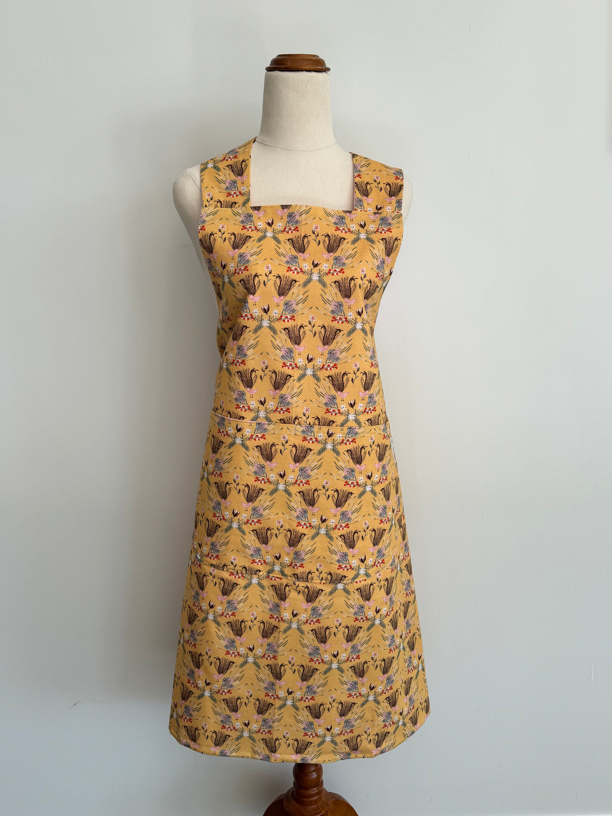 Wrap-Around Apron - Yellow Lyrebird Fabric